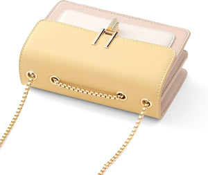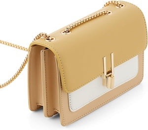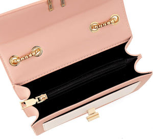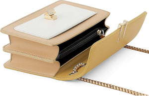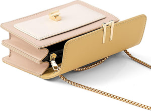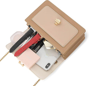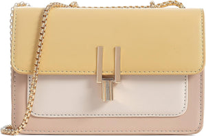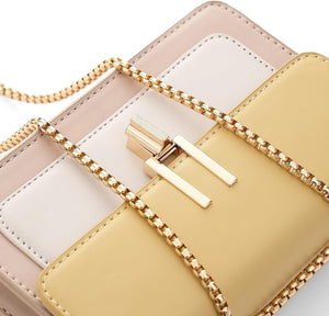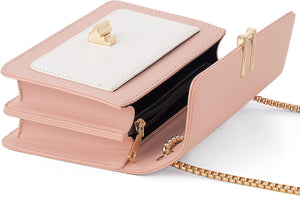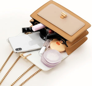 This cute faux-leather women's crossbody bag looks chic with any outfit. Color blocking design, exquisite hardware decoration with turn lock closure, carry along on hand or across your shoulders as an everyday style piece.