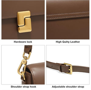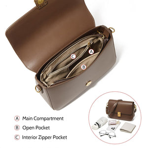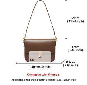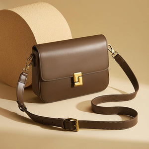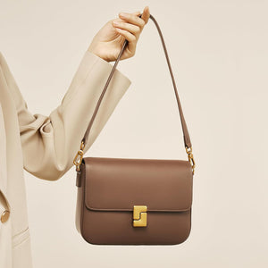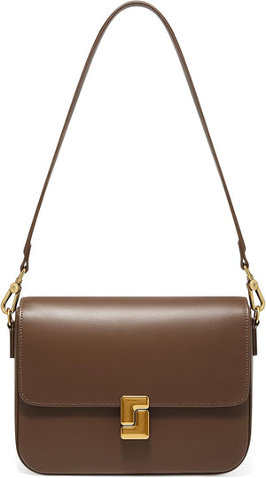 - The shoulder bag's polished brown finish exudes a timeless elegance suitable for various occasions.