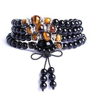 Obsidian Tiger Eye Necklace Bracelet Mala