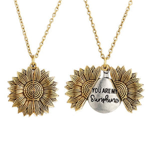 Our sunflower necklace locket opens to a hidden engraved message pendant that says "you are my sunshine." Keep these special words of love close to her heart. It is the perfect gift for women of all ages. This includes your girlfriend, wife, daughter, kids, mom, granddaughter, or grandma